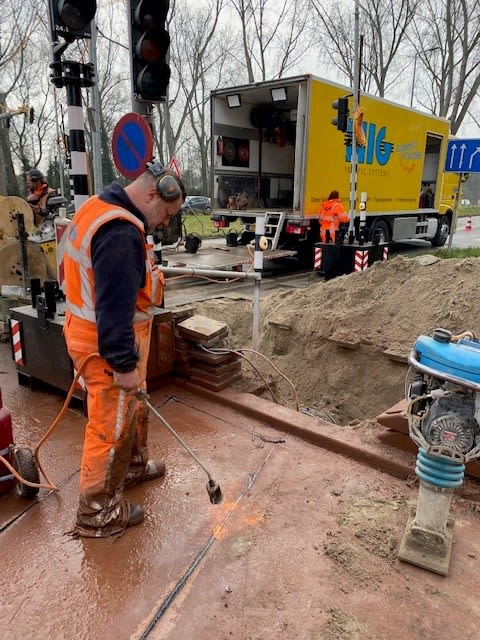 Ondersteunen bij het uitzetten en zagen van detectielussen in het asfalt